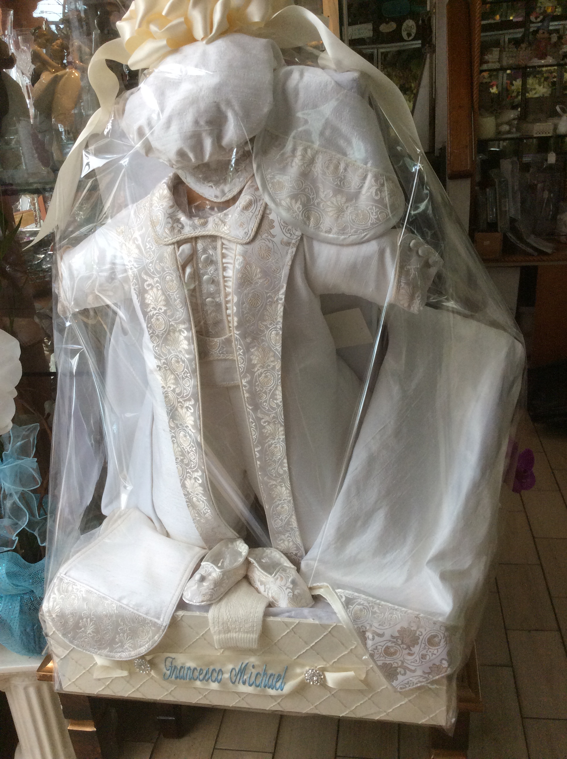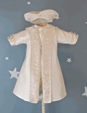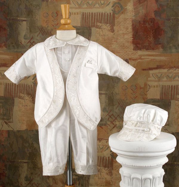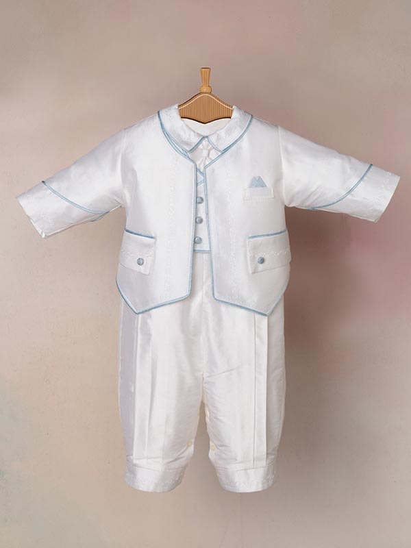 Treasure every second of his or her christening! Celebrate a monumental occasion with the perfect christening outfit. Complete the look with the matching shoes, bib, blanket and burp cloth, and display the entire look with a personalized keepsake box.